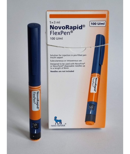 NOVORAPID FLEXPEN 300 I.U. is a rapid-acting insulin used primarily in the management of diabetes mellitus to control blood sugar levels. This pre-filled pen contains insulin aspart, a synthetic insulin analog, which mimics the insulin produced by the body to lower blood glucose. Its unique feature is its rapid onset, making it essential for managing spikes in blood sugar typically experienced during meals. The FlexPen design offers convenience with pre-set dosages, making it user-friendly for precise self-administration. π